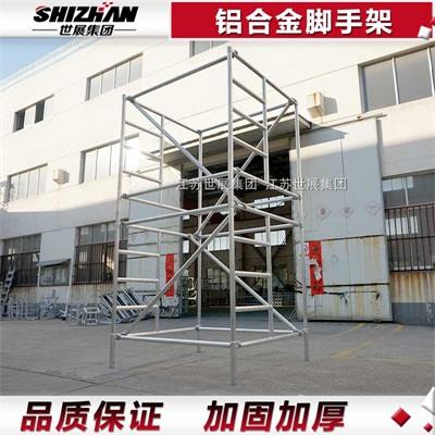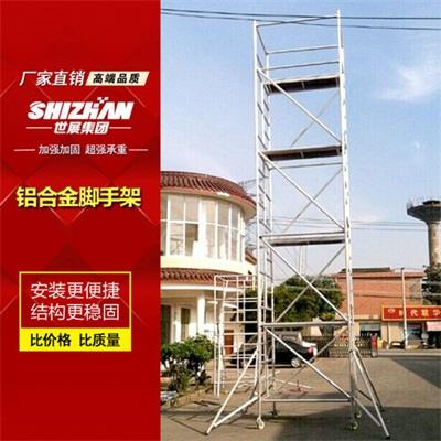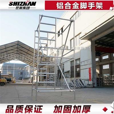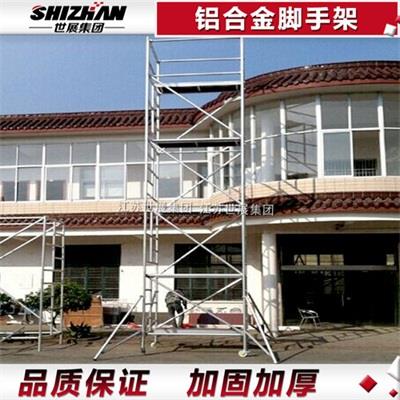 铝合金脚手架使用灵活,尤其适用于狭窄场所的复杂建筑、停车场、出入口、门、广告牌等的施工、装饰和维修。移动式脚手架具有安装快捷、牢固、灵活、适应性强的特点。产品各部分均采用冷热镀锌防腐处理,经久耐用,美观大方。是广大建筑装饰行业的理想辅助施工设备。使用脚手架之前要确保所有铆钉、螺栓、螺母和可动部件紧密连接,梯柱和梯子牢固可靠连接,拉伸弹簧和铰链处于良好工作状态。还要梯子保持清洁,不含油脂、油脂、油漆、泥浆、雪等光滑的物质。